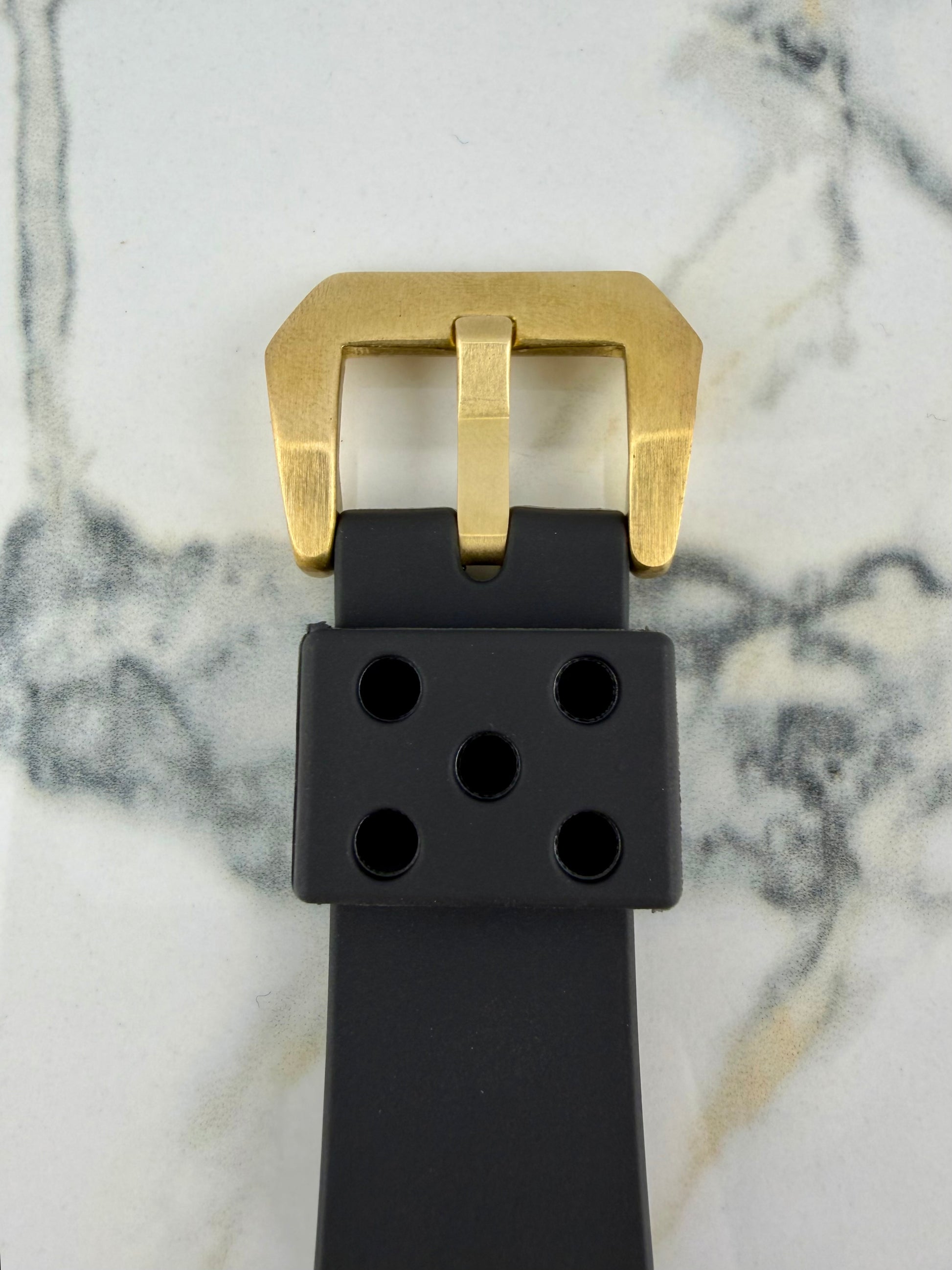 - Strap: Seiko Rubber "Wave" Strap with Brass Hardware